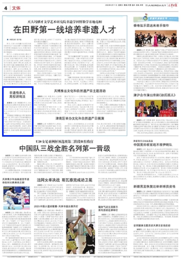 天津日报:天津日报数字报刊平台-非遗传承人 高校讲戏法 (tianjinwe.com)