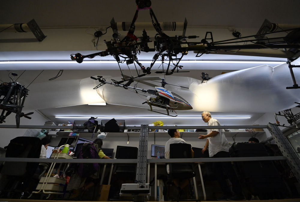 李哲在户外准备放飞无人机(11月3日摄)。