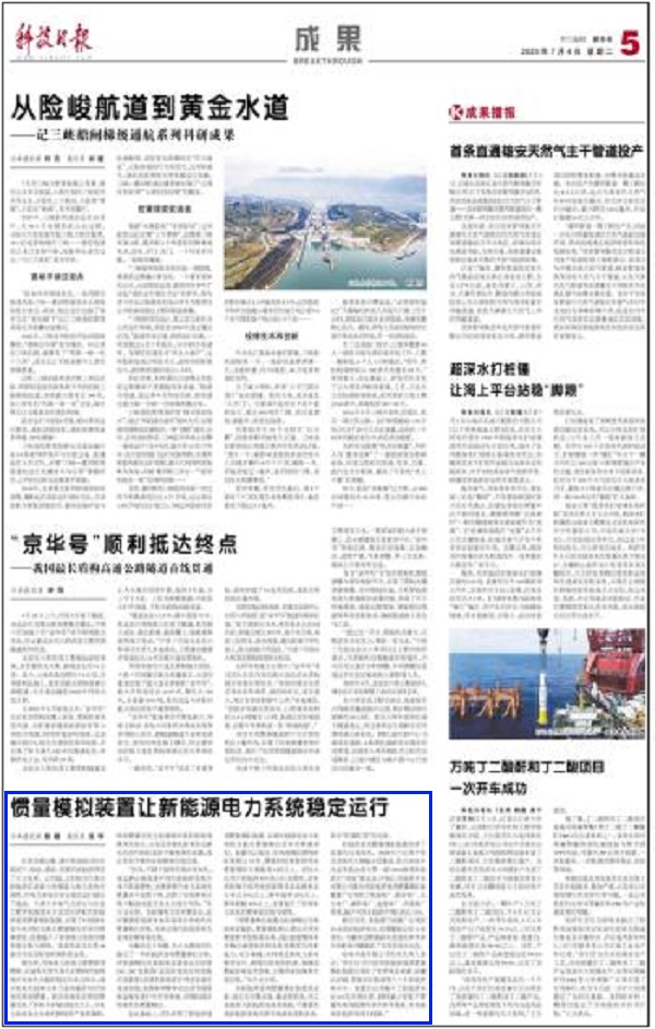 “其惯量响应能量由快速响应的超级电容提供,惯量模拟核心算法采用高精度数字控制器实现,因此装置整体具有响应速度快的特点和高精度的控制能力,可以准确、实时地监测电力系统频率变化,根据实际情况快速、准确调整超容电压充放电,以维持系统频率的稳定性。”朱介北介绍。