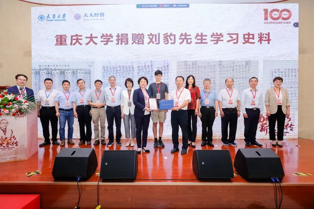 重庆大学机械与运载工程学院党委书记陈晓慧代表重庆大学,将刘豹先生本科时期花名册、成绩单、毕业证等学习史料捐赠给天津大学档案馆,天津大学档案馆馆长韩宝志接受捐赠并颁发捐赠证书。