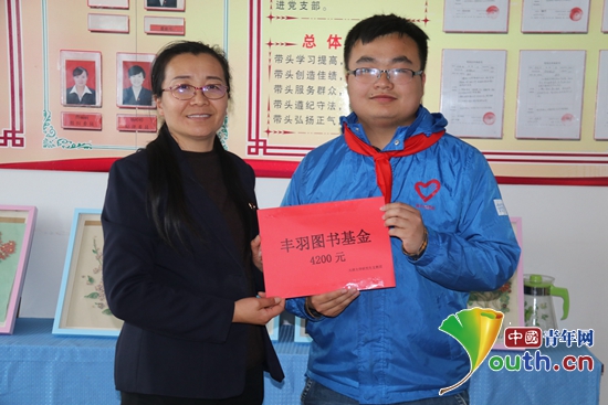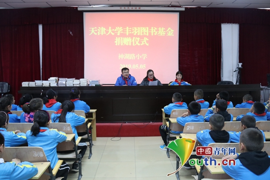 中国青年网北京5月7日电(记者 刘喆 通讯员 詹浩淼)“天津大学对学生的科研成果进行奖励,本身就是希望学生们能继续勤奋求学,为社会做贡献。所以将自己的论文奖金用于帮助边疆少数民族学子购买图书、开拓视野、丰富知识,是让这笔奖金发挥更大的作用。”5月5日,新疆布尔津县神湖路小学举办图书捐赠暨天津大学“丰羽”图书基金成立仪式,仪式上,天津大学第二十届研究生支教团成员詹浩淼如是说。
