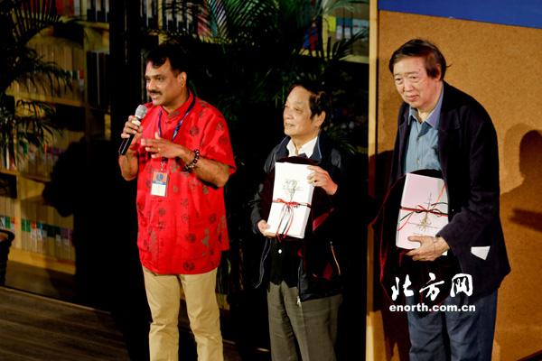 开幕式由央视新闻评论员白岩松主持,现场氛围温馨、热烈,兼具学术的庄重与艺术的感染。英国巴斯大学教授余德烁把冯骥才写韩美林的口述史《炼狱·天堂》翻译成英文,这次他带来译稿,现场赠送给这对老友;人民文学出版社社长臧永清不仅请冯骥才共同揭幕“冯骥才记述文化五十年”精装套书,还向后者送上《俗世奇人》(足本)发行100万册的纪念品;著名作家王蒙和圣彼得堡大学东方系罗季奥诺夫教授都发表了热情洋溢、幽默智慧的致辞;著名音乐家滕矢初和钢琴泰斗刘诗昆都用精彩的演奏助兴;前央视主持人、中国传媒大学博导王志,还朗诵起冯骥才的一首诗《路》:“这是一条时而欢乐、时而痛苦的路,这是一条布满荆棘的路……但我决意走这样的路,因为它是一条真实的路。”这首冯骥才写于而立之年生活艰辛时刻的诗歌,也正是他后来几十年人生的真实写照,令全场观众都为之动容。