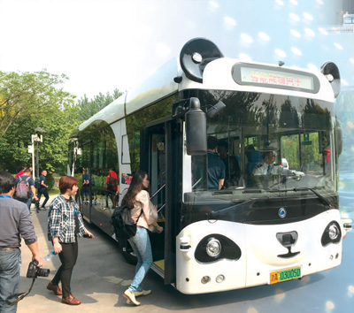 第三届世界智能大会期间,3辆熊猫智能公交车在中新天津生态城正式上路试运行,乘客可通过高精准生物智能识别系统实现“扫手”乘车。