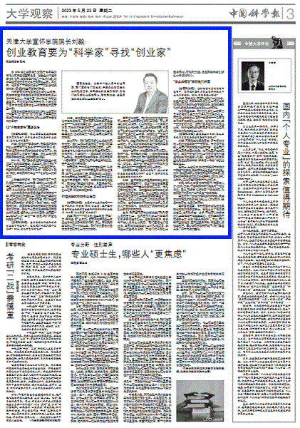 《中国科学报》:什么原因让您选择担任宣怀学院院长?对于天津大学未来的创业教育,您有怎样的愿景?