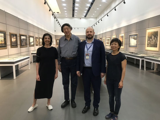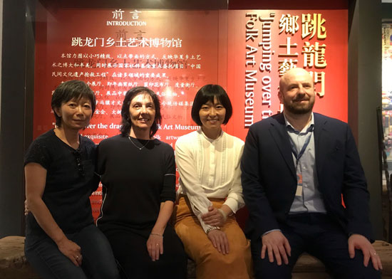 意大利代表团部分成员在冯研院木版年画中心与该中心负责人王坤(右二)合影