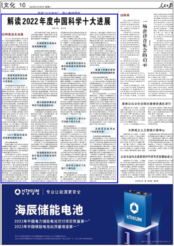 3月17日,科技部高技术研究发展中心(科技部基础研究管理中心)发布了2022年度中国科学十大进展,具体包括:祝融号巡视雷达揭秘火星乌托邦平原浅表分层结构;FAST精细刻画活跃重复快速射电暴;全新原理实现海水直接电解制氢;揭示新冠病毒突变特征与免疫逃逸机制;实现高效率的全钙钛矿叠层太阳能电池和组件;新原理开关器件为高性能海量存储提供新方案;实现超冷三原子分子的量子相干合成;温和压力条件下实现乙二醇合成;发现飞秒激光诱导复杂体系微纳结构新机制;实验证实超导态“分段费米面”。