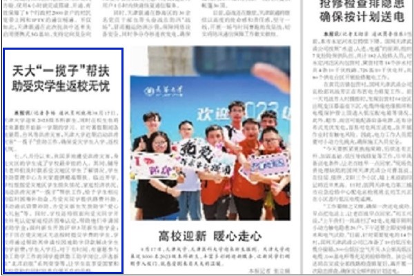 本报讯(记者李杨 通讯员刘晓艳)8月17日,天津大学迎来2023级本科新生,同时在校生也将结束暑假开始新一学期的学习。针对暑假期间各地暴雨、台风等洪涝灾害,天津大学近期启动洪涝灾害“一揽子”资助工作,确保受灾学生入学、返校无忧。
