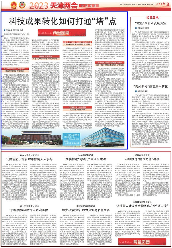 高校作为科技第一生产力、人才第一资源、创新第一动力的重要结合点,其科技成果的有效转化对社会经济发展具有十分重要的意义。发挥科技第一生产力的作用,关键就在于让“纸上成果”走出实验室和工作间,转化为推动高质量发展的现实生产力。就科技成果转化“堵点”如何破?在今年天津两会上,代表委员谈想法、提建议。