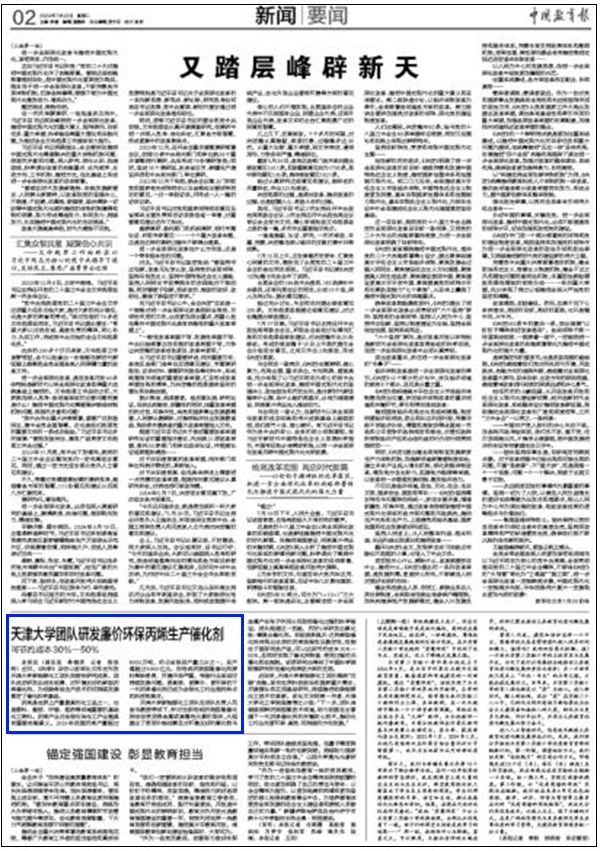 本报讯(通讯员 焦德芳 记者 陈欣然)近日,《科学》杂志以封面论文形式刊发天津大学新能源化工团队突破性研究成果。团队成功研发出成本低廉、对环境友好的新型丙烯催化剂,为低碳烯烃生产技术的可持续发展奠定了催化科学基础。