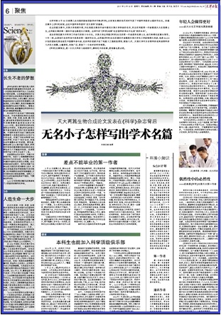 2016年12月,在武汉工作的瞿蓝梦接到了师兄谢泽雄的电话,请他确认自己的科研内容并向《科学》提交他作为论文作者的个人资料。“太兴奋了,没想到我大三时合成的酵母菌片段,还有这么大用处。我也是发过《Science》的人了。”瞿蓝梦的惊喜溢于言表。