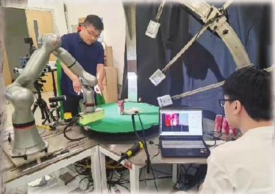 日前,记者走进位于天津大学智能与计算学部大楼一楼的实验室,这间实验室正是冯伟教授团队领衔的“馆藏文物数字指纹提取鉴别与身份智能管理关键技术”国家重点研发计划项目实验现场。刚迈进门口,首先映入记者眼帘的是一个朴实的转台和精密的机械臂。只见一台显微探头相机在机器臂的操纵下,围绕着一尊古朴的“青铜鼎”进行自动定位、精确对焦以及信息采集。旁边的电脑屏幕上,正实时展示着相机捕获的细致画面。画面从文物全貌逐渐定位为微观局域,最终,一个如头发丝般大小的点位,经过上百倍放大,清晰地呈现在屏幕上。