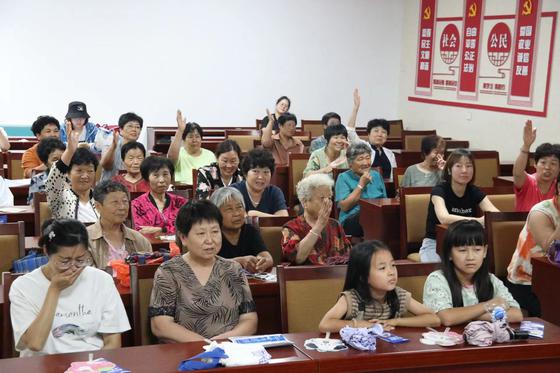 “爷爷奶奶大家快坐好,今天的医疗科普小讲座马上要开始啦!” 在北辰区辛侯庄村,尽管屋外大雨滂沱,大爷大妈们却座无虚席,热情高涨。天津大学的实践队员们正在讲授精心准备的“医疗科普课”。这次科普的内容是冠心病保健知识与CPR、海姆利克急救知识。现场气氛活跃,村民们兴致勃勃,不时伸出手比划起急救动作的姿势,踊跃回答。