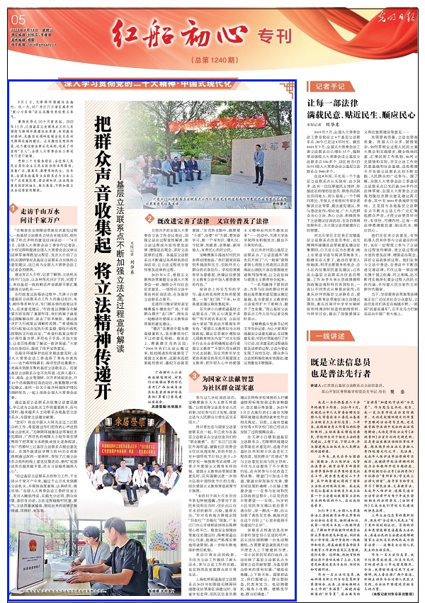 来自日常生活的线索,不仅为立法工作提供了源头活水,参与立法工作的实践,也在悄然改变着群众的日常生活。