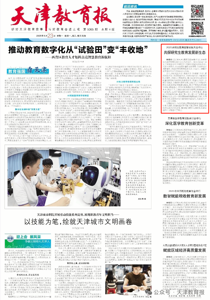 本报讯(记者 彭未风 通讯员 梁绍楠)日前,2025研究生教育数智发展大会在天津召开。本次会议由中国人工智能学会和中国研究生院院长联席会联合举办、天津大学承办,来自全国各地的高校领导、专家学者以及教育部、中国研究生院院长联席会、中国人工智能学会等相关单位代表300余人参加。