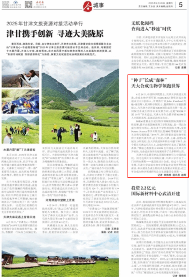 天津大学是最早把这项国际赛事引入中国的高校。因为这项大学生国际比赛,天津大学开设了一门本科生课程——基因组设计合成。经过十几年的发展,天津大学合成生物学从零起步走到世界科技前沿,牵头建设合成生物技术全国重点实验室,近三年合成生物学领域研究论文发表量居全球第一。