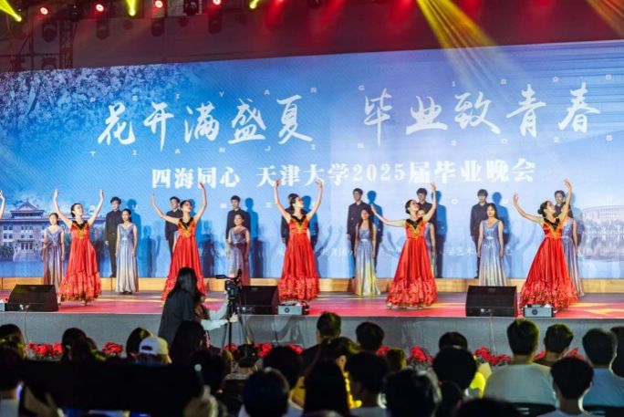 中宏网讯 7月1日晚,在庆祝中国共产党成立104周年的重要时刻,天津大学在卫津路校区体育馆举办“花开满盛夏 毕业致青春”2025届毕业晚会,将价值引领、美育熏陶与红色教育深度融合,为即将踏上新征程的毕业生献上一堂生动而深刻的青春思政课,引导毕业生厚植家国情怀,传承红色基因,永葆爱校荣校之心。