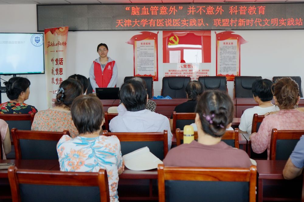 新华社客户端天津7月12日电(张建新 李庚)得了高血压怎么办?如何预防糖尿病?炎炎夏日,天津大学“有医说医”实践队的29名青年学子奔波于天津市滨海新区、宁河区、西青区等七个区的十七个社区、乡村,将健康防病知识送到老年人身边,在街巷深处踏出服务“健康中国”的青春脚印。