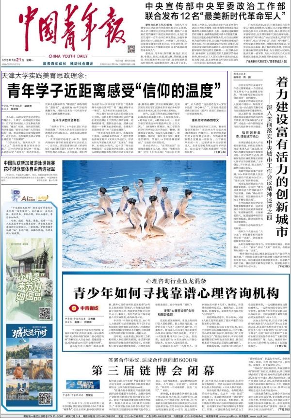 中国青年报:https://zqb.cyol.com/pc/content/202507/21/content_413901.html