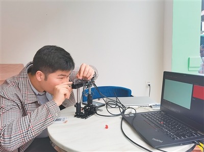杜有成在对光学显示模组进行调试。