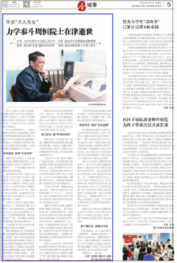 昨日,记者从天津大学获悉,我国著名流体力学专家、教育家,中国科学院院士,天津大学机械学院名誉院长周恒教授,因病医治无效,于2025年8月1日8时54分在天津逝世。