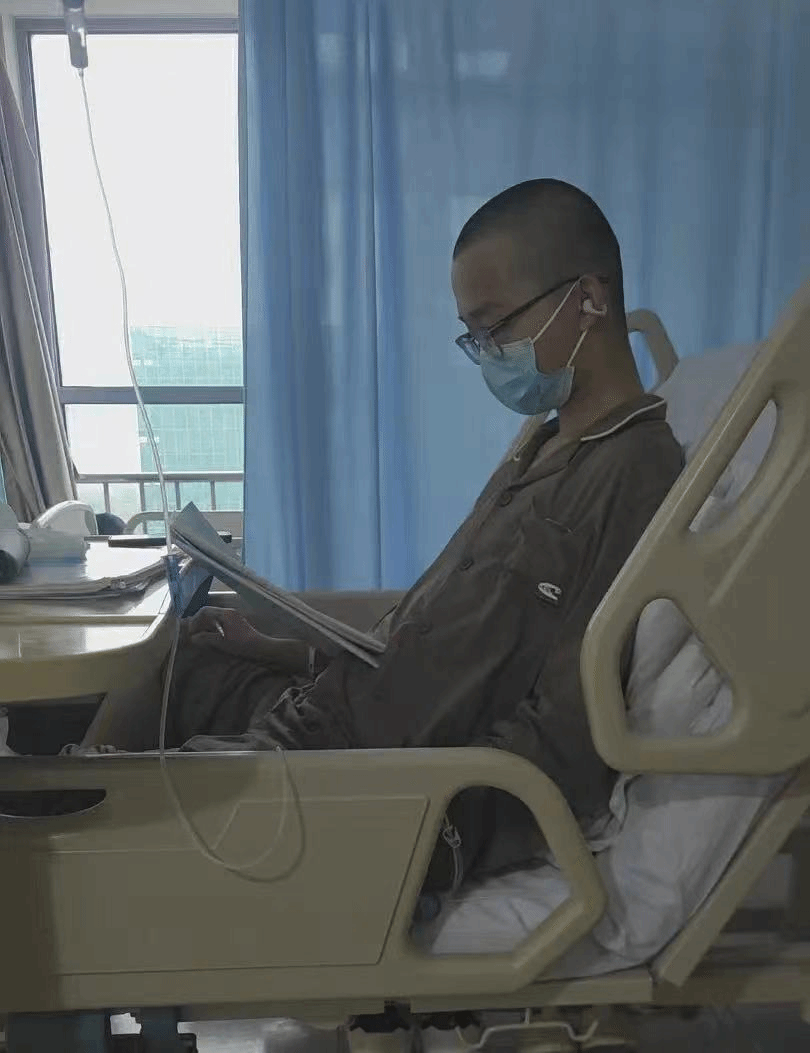 他左手扎着留置针,右手握笔