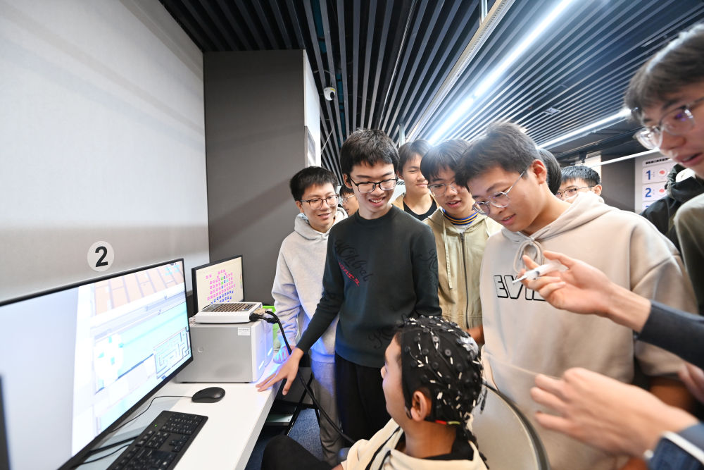 学生在天津大学脑控系统研发与集成应用实验室内上课。新华社记者 李然 摄