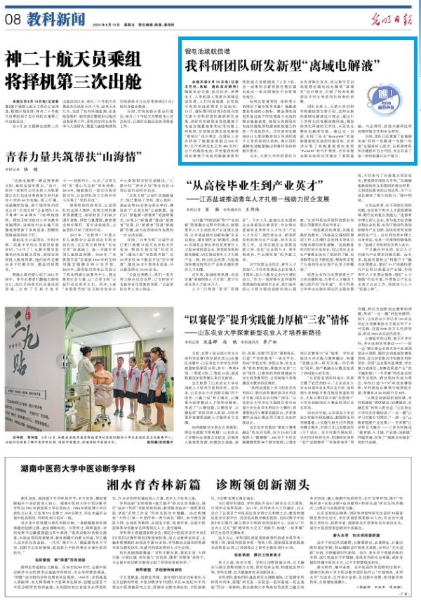 光明日报:我科研团队研发新型“离域电解液”-光明日报-光明网 (gmw.cn)