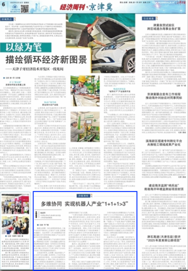 张淑芳认为,在京津冀一体化背景下,天津可以从三个方面与京冀两地共同构建富有活力的产业生态。“首先,加强科技创新和成果转化联动,依托天津大学、南开大学等高校科研资源,深化与北京机器人科技创新平台及企业的合作,促进机器人相关科技成果在天津落地;其次,优化产业协同布局,借助天津在信创产业的优势,构建‘机器人+信创’协同生态,发挥天津在工业机器人等高端装备制造领域的优势,深化产业链合作。此外,推进场景赋能,以港口、汽车、半导体、电力装备等特色产业场景为核心载体,构建‘场景开发—落地示范—协同推广’的产业联动闭环,促进机器人产业协同发展。”她说。