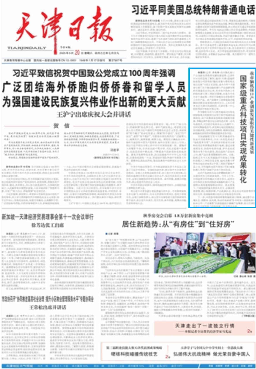 天津日报:天津日报数字报刊平台-国家级重点科技项目实现成果转化 (tianjinwe.com)