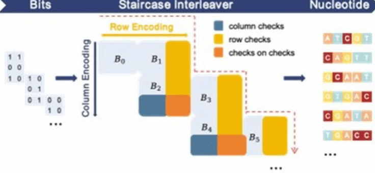 该研究通过设计阶梯式交织结构与迭代式软判决解码机制,在不依赖复杂多序列比对的前提下,实现了对插入、删除及替换等典型合成错误的有效校正。该方案还具备并行解码能力,有助于提升大规模数据检索的效率。
