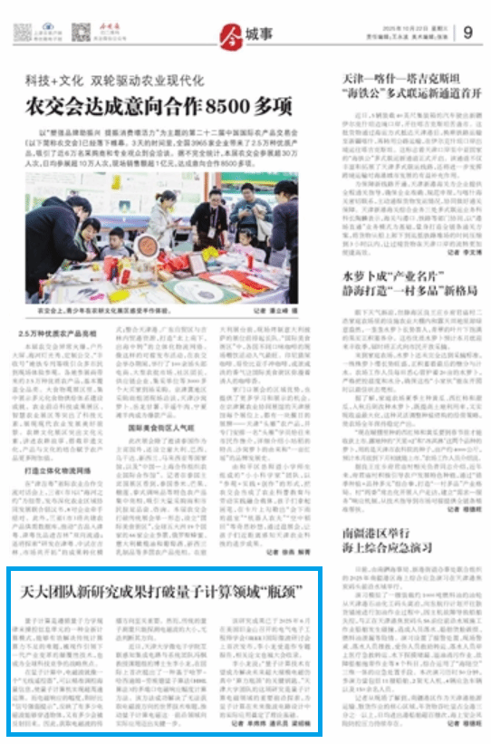 今晚报:今晚报数字报-天大团队新研究成果打破量子计算领域“瓶颈” (enorth.com.cn)