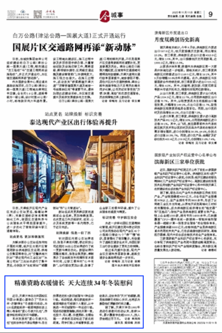 据了解,天津大学自1992年启动冬装慰问活动以来,连续34年,累计覆盖学生超3200人,投入资金超过百万元。