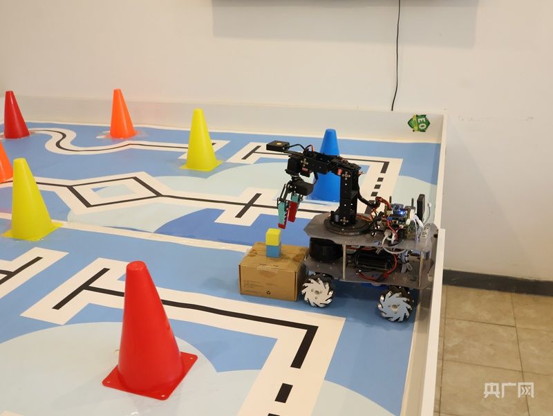 由“片上脑”操控的小车精准抓取物品(央广网发 王婧瑜 摄)