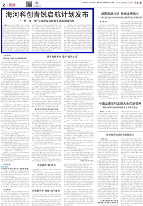 1月11日,市教委正式发布“海河科创青锐启航计划”,通过“一奖一赛一盟”协同打造全市高校师生创新创业品牌,着力构建“政府引导、高校主体、社会助力、企业协同”的全链条创新创业教育体系,推动高校学生受熏陶、学课程、多实践,高校教师获资助、享支持、促转化,高校双创学院搭平台、传经验、强服务,全面激发高校师生的创新创业意愿和热情,更好服务天津高质量发展。