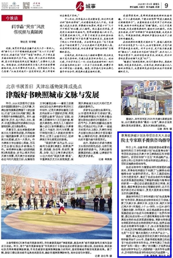 昨日上午,由教育部、财政部联合部署的基础学科和交叉学科突破计划“合成高等生物”先导项目启动会在天津大学卫津路校区科学图书馆举行。该项目剑指“十五五”未来战略产业,10名院士和2位专家作为咨询专家组出席会议,为项目实施提供咨询指导。
