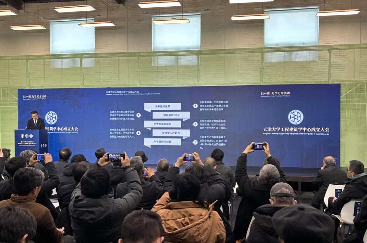 1月17日,天津大学工程建筑学中心成立仪式在天津大学建筑学院举行。活动以“传承学术薪火、赋能学科发展” 为核心,来自中国建筑设计研究院、天津大学、东南大学、同济大学、深圳大学、清华大学、内蒙古工业大学等单位的院士专家、行业代表、师生校友共同出席了本次活动。