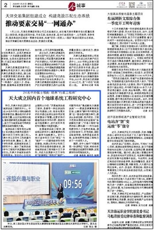 昨日,天津大学成立国内首个地球系统工程研究中心。中心由24名中外院士领衔战略咨询专家委员会,整合校内外多学科优势力量,以应对全球变化挑战、服务国家绿色发展战略为核心,致力于为地球系统可持续发展提供系统性解决方案。
