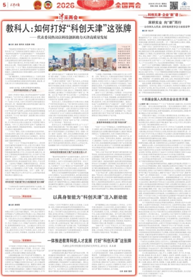 【2026全国两会】《天津日报》教科人:如何打好“科创天津”这张牌——代表委员热议以科技创新助力天津高质量发展