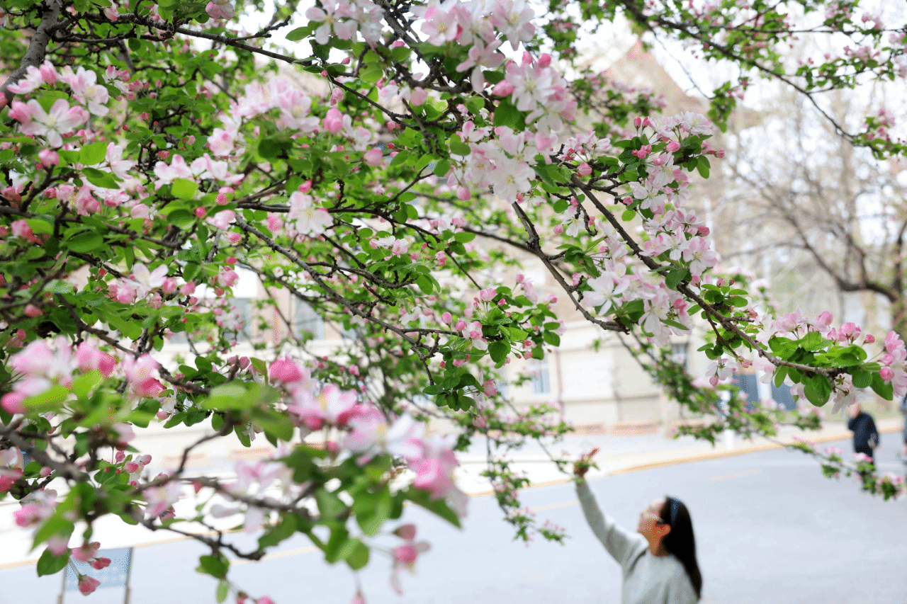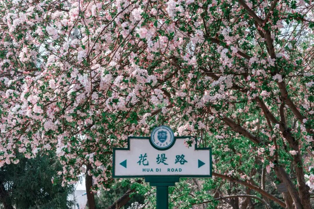 今年天津大学的海棠季亮点频出,花期错落有致更添意趣。天津大学卫津路校区海棠最佳观赏期在4月初,可持续10天左右;北洋园校区花期则延后约一周。两校区千余株海棠交相辉映,既有40年树龄的经典景观,更有水利馆旁超过70年的古树,成为春日校园里动人的风景。
