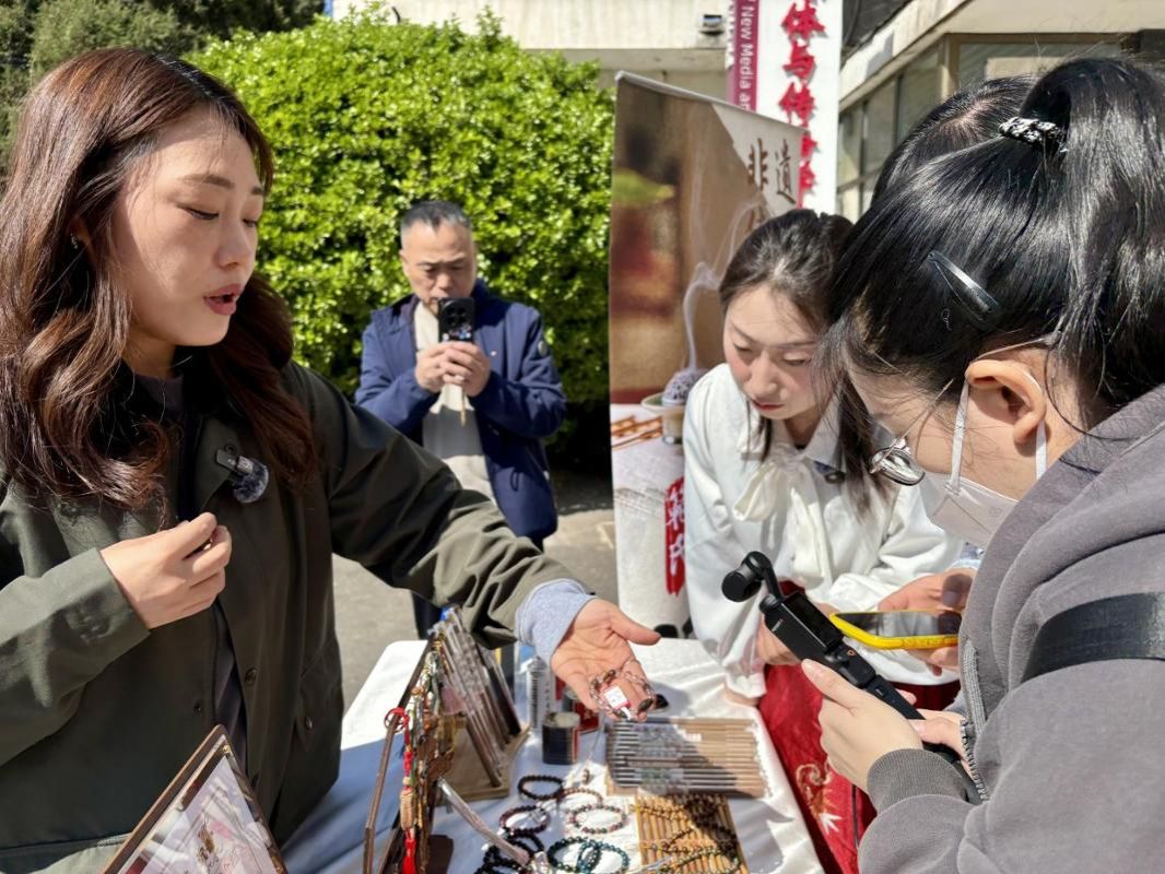 “每年春天,天大的海棠都是我最期待的风景!”带着家人前来赏花的市民王女士难掩欣喜,“不仅能看到这么美的花,还能带孩子走进大学实验室,感受科学的奇妙,这样的体验太特别了。”在文创展区,海棠主题帆布包、香薰卡片、冰箱贴等学子原创设计产品备受青睐,粉色的海棠棒棒糖更是成为“网红”单品,游客们纷纷选购,将这份春日记忆带回家。