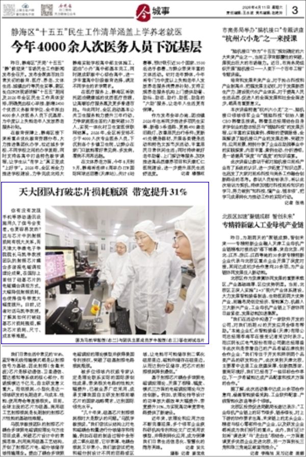 我们日常生活中常见的WiFi、蓝牙等无线传输模式都是以射频信号为基础,因此射频(含毫米波)芯片是移动通信、卫星通信、雷达感知等系统的核心部分,市场规模达千亿元,自主研发意义重大。而低损耗、小型化是这一领域研发的长期追求,与成本、性能、使用寿命等直接相关。目前,全球主流的芯片为硅基,商用硅工艺射频损耗是长期制约射频芯片性能的基础性难题。