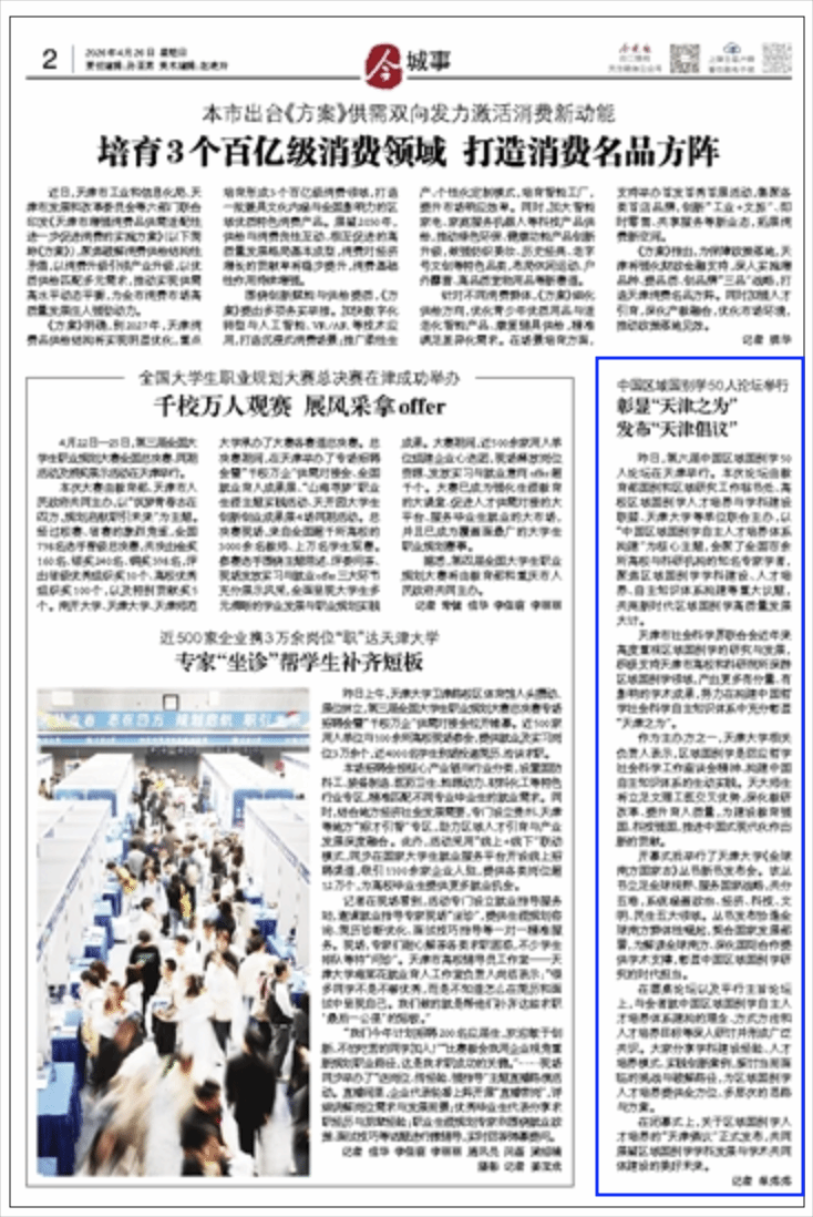 作为主办方之一,天津大学相关负责人表示,区域国别学是回应哲学社会科学工作座谈会精神、构建中国自主知识体系的生动实践。天大师生将立足文理工医交叉优势,深化教研改革、提升育人质量,为建设教育强国、科技强国,推进中国式现代化作出新的贡献。