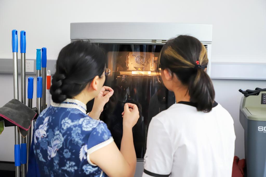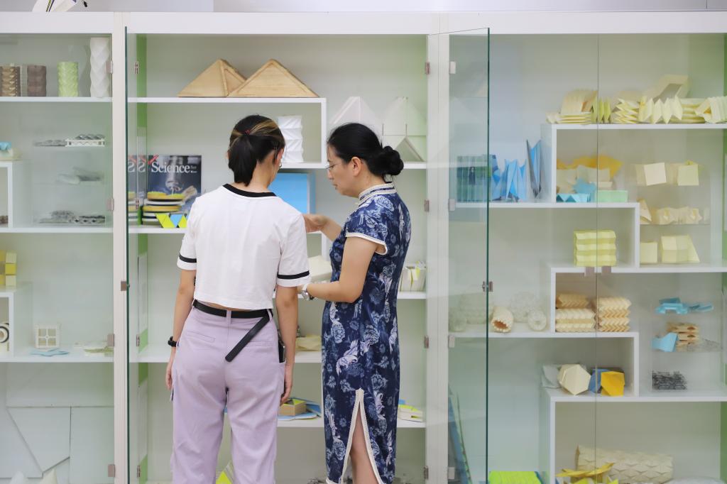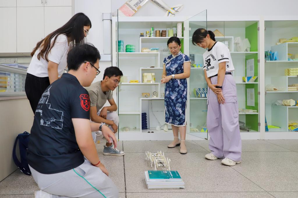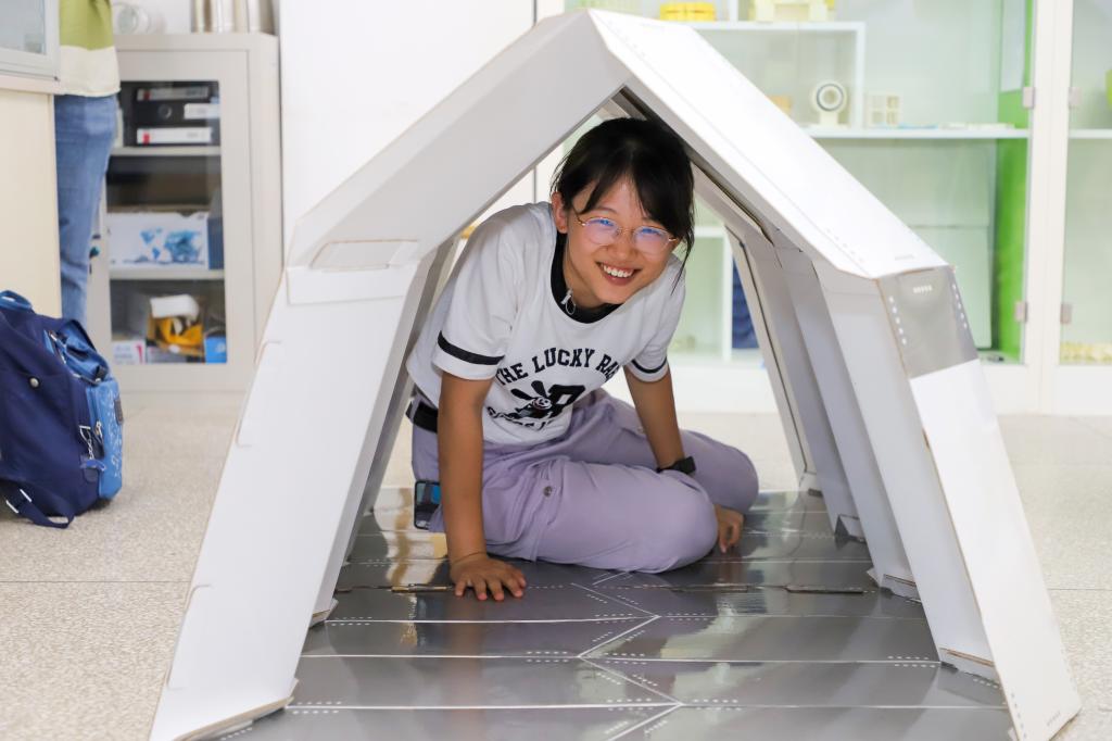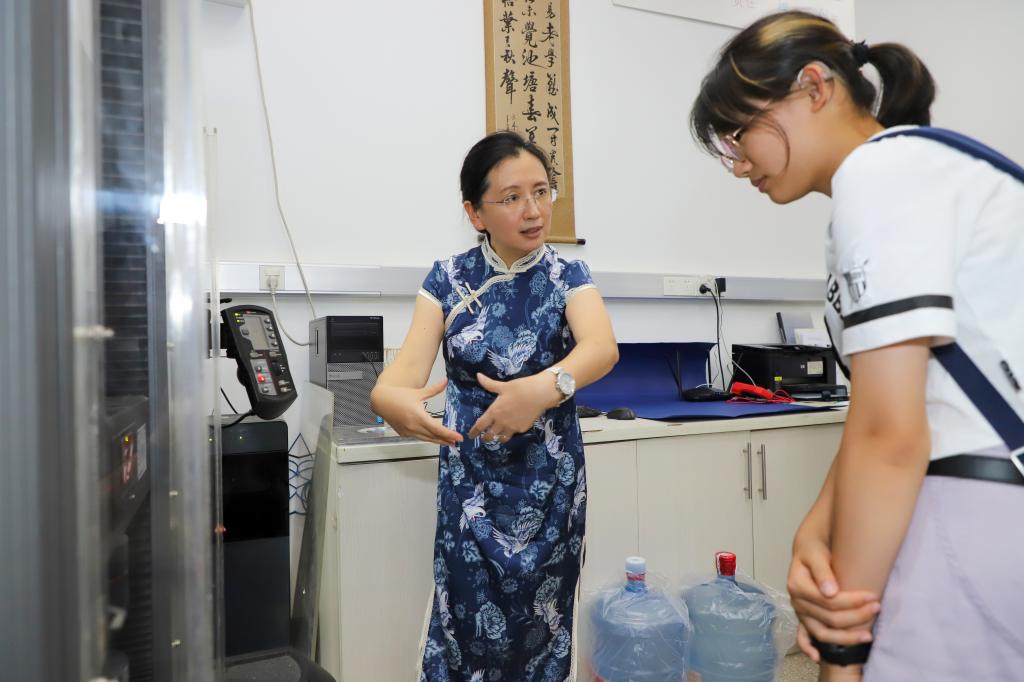 中午12点,一同来到位于机械学院陈焱教授的实验室。“这是可用于航空结构,你看这是一个多稳态的结构;这个结构可以作为太空站的临时仓……你来体验一下这个……”陈老师给一同展示实验室里的各种结构,展示实验室里各种实验设备,学长学姐们也热心地过来帮忙,这让一同感到既新奇又有趣,时而思考时而开心地一笑。