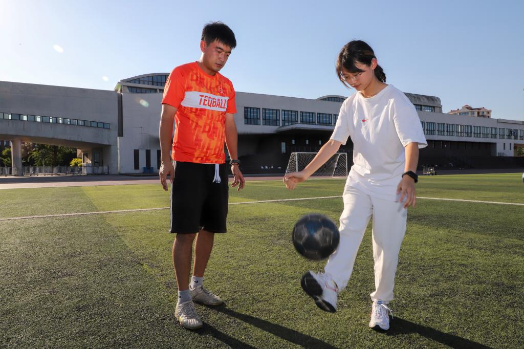热爱运动的一同,大学第一学期的体育课选修了足球,“之前在小学和中学都踢过足球。”