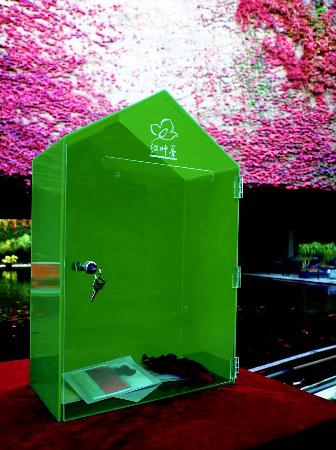 “红叶季”活动期间,冯研院准备了心愿卡、笔、彩墨和信封,同学们可以把自己未来几年的期许、愿望、向往和小目标,写下来,装进信封。冯研院绝不会拆开,绝对保密。心愿卡副券,是将来取信所凭借的存根。现场准备了丝带和流苏,帮同学们把存根做成书签,将这枚特殊的“红叶”保存在自己手里。今后的红叶季,每年准备三个信箱,每一个对应未来不同的年份,同学们想寄给哪一年的自己,就把信投进哪个信箱。每一年的红叶季活动会打开当年的信箱,同学们可以凭借存根,亲手取走自己的信。