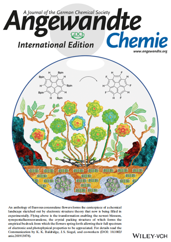 本站讯(通讯员 武杉)2019年12月,国际著名期刊德国应用化学(Angewandte Chemie International Edition,影响因子12.102)以内封面文章、Hot Paper的形式在线发表了天津大学药学院Jay S. Siegel教授团队在氟代碗烯理论预测和五氟碗烯合成方面取得的最新科研成果“Fluorous Corannulenes: Ab initio Predictions and the Synthesis of sym-Pentafluorocorannulene”(DOI: 10.1002/anie.201913878)。药学院博士研究生田小祺是文章的第一作者,通讯作者为Jay S. Siegel教授和Kim K. Baldridge教授,天津大学为第一署名单位。