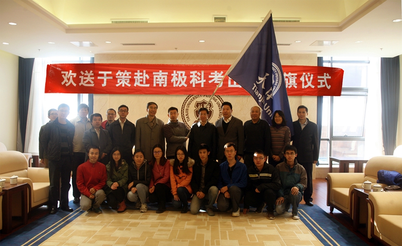 11月2日上午,天津大学在北洋园新校区行政楼贵宾室举办了一场特殊的出征仪式,该校校长李家俊向即将启程参加我国第32次南极科学考察的计算机学院副教授于策授予了一面天大校旗。于策作为此次南极科考天文组的核心成员,将登上位于南极大陆最高点的昆仑科考站,执行“南极巡天望远镜(AST3)”观测数据分析处理系统以及能源保障平台、台址监测气象站等设备系统的安装、升级与维护任务。这面天大校旗将在昆仑站展开,向世界展现天大人脚踏实地,“仰望星空”,致力于服务我国天文观测领域重大战略需求的“家国情怀”。