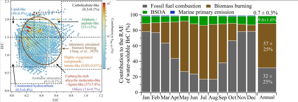 图2 FT-ICR MS分析和数值模拟研究发现生物质燃烧是北极棕碳气溶胶的主要来源