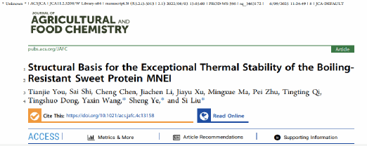 近日,天津大学医学部生命科学学院叶升、刘斯团队在ACS旗下的《Journal of Agricultural and Food Chemistry》期刊上发表了题为“Structural Basis for the Exceptional Thermal Stability of the Boiling-Resistant Sweet Protein MNEI”的研究论文,利用X-射线晶体衍射技术解析了四个突变体的高分辨率结构模型,并通过分子动力学模拟(Molecular Dynamic simulations)的方法阐述了四个突变体热稳定性提升的机制,为未来突变体改造提供一种方法和指导。