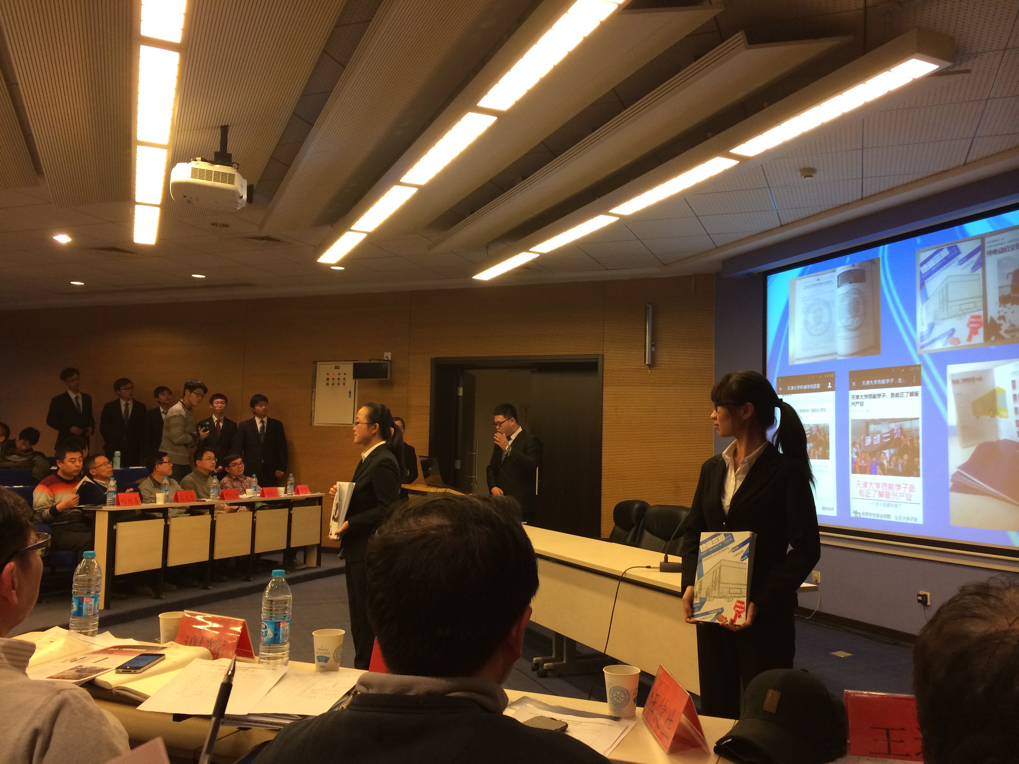 这一天,平时穿着随意的大学生们刻意像“职业人”一样穿着西装、打着领带,带着精心准备的PPT(幻灯片),站在讲台上。而他们要面对的“考官”则是包括来自相关企业的总经理和总工程师以及专业领域的教授们。在一下午的时间里,三家“公司”的“总经理”和“总工程师”分别有一个小时的时间对他们的项目——纯电动小轿车、城市SUV和公交车三种车型的整车传热系统设计和管理作研究报告,并接受评委们的质询。